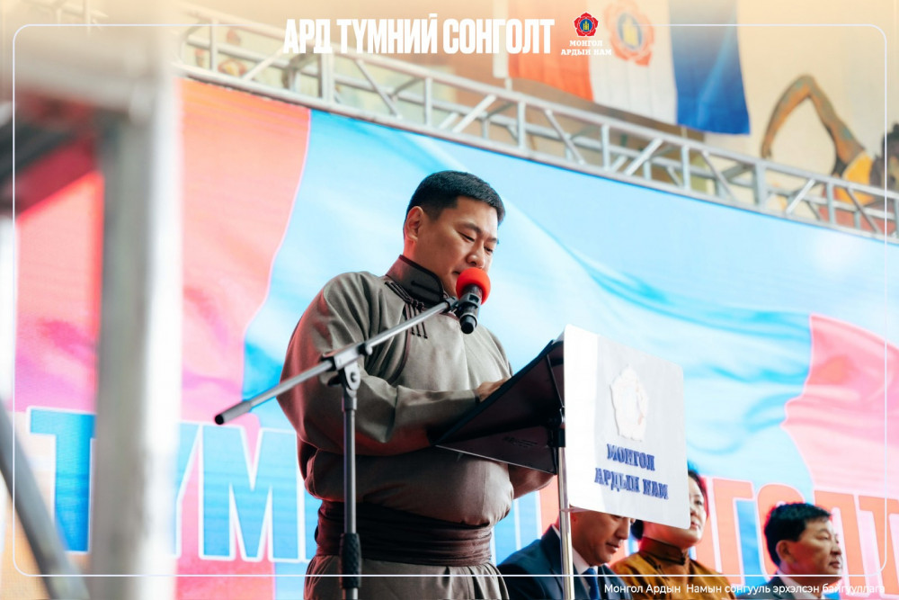 Монгол Ардын намын дарга, Ерөнхий сайд Л.Оюун-Эрдэнэ “Боржигон сэцэн вангийн хошуу, Буддын Таван ухааны төв байсан Говьсүмбэр нутгийн зон олон, иргэд сонгогчидтой дахин уулзаж байгаадаа баяртай байна” гээд энэ удаагийн сонгуульд Ардын нам яагаад ялах ёстойг тайлбарлалаа. Тэрбээр “Тусгаар тогтнол, бүрэн эрхт байдал, парламентын засаглалаа хамгаалан бэхжүүлэх сонголтын өмнө та бид байна. Сонгуулийн үед түр зуурын үйл явдал, худал сурталчилгаа, жижиг гомдол, мөнгөөр үнэт зүйлээ сольж болохгүй. Авлигатай тэмцэхийн тулд, авлигачдаас ард түмэн хүчтэй гэдгээ нотлохын тулд та бүхэн Ардын намыг сонгоорой. Нэг ёсондоо ард түмэн ялах уу, хилийн чанадаас ажиглаж буй бүлэглэл ялах уу гэдэг сонголт юм” гэлээ.