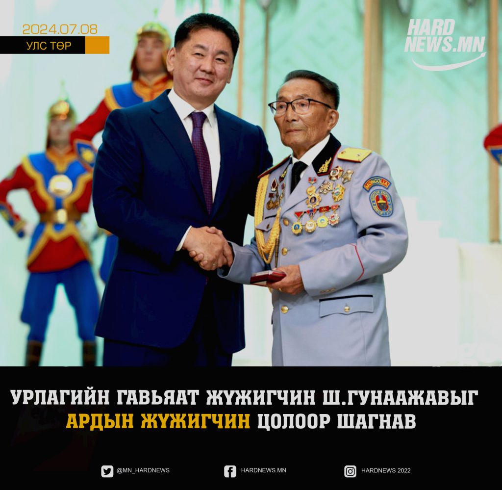 Хөгжмийн зохиолч, удирдаач, Урлагийн гавьяат зүтгэлтэн, Бэлтгэл хоршууч Ш.Гунаажавыг Ардмын жүжигчин цолоор шагналаа.