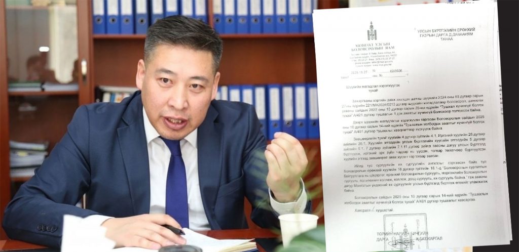 Өмнө нь ажиллаж байсан яамандаа саяхан буцаж томилогдсон Боловсролын сайд Л.Энх-Амгалан өнгөрсөн долоо хоногт нэлээд бухимдалтай байв. Тэрбээр яамныхаа хурал дээр “…Дээд боловсролын хуулийн хэрэгжилт хаачсан бэ. Өнөөдөр Монгол Улсад дээд сургууль гэж байхгүй. Их сургууль, коллежийн тогтолцоонд шилжүүлж өгөөд явсан. Техникийн даалгаврыг нь бүгдийг батлуулаад бүтэн ном болгож өгөөд явсан. Би 100 орчим их, дээд сургуулийг 66 болгож цөөлсөн. Гэтэл дахиад тоо нь нэмэгдсэн байна. Ямар үндэслэлээр их дээд сургуулийн тоог нэмсэн бэ. Үндэсний гэдэг тодотголтой их сургуулиудыг “…Ийм нэртэй байж болохгүй ээ” гэж хуульчлаад явсан. Яагаад үндэсний гэдэг нэрийг энэ сургуулиуд очоод авчихсан юм бэ. Тэр МҮИС гэдэг нэр хууль бус гэдэг дээр бүх шийдвэрүүд нь гарсан. Тэр нэр яагаад өөрчлөн зохион байгуулагдахгүй байгаа юм. Хэнээсээ айгаад байгаа юм бэ” хэмээсэн юм. Үүний учир нь, Боловсролын яамны Төрийн нарийн бичгийн дарга Х.Батжаргал яамныхаа бодлогын эсрэг гэхээр нэгэн ноцтой үйлдлийг хийчихжээ. Тэрээр МУИС-ийн нэрийг дахин булаацалдах боломжийг МҮИС-д олгосон байна.Учир нь, МҮИС хэмээх хувийн сургууль МУИС-ийн нэрийг “зээлдэж” хэрэглээд арваад жил болсон. МҮИС нь МУИС-ийн монгол, англи нэршлийг андуурагдах байдлаар ашиглаж ирсэн. Энэ нь шинээр элсэгчдийн дунд төдийгүй гадаад дотоодын хамтран ажилладаг байгууллага, хүмүүсийн дунд төөрөгдөл үүсгэдэг байсан юм. Тиймээс, Л.Энх-Амгалан сайд өмнө нь БШУ-ы сайд байхдаа “…МУИС-ийн МҮИС-тай андуурагддагийг засна” гэдэг байсан. Түүндээ ч хүрсэн. Тэрээр 2022 оны аравдугаар сарын 6-нд “...Уг маргаан олон жил үргэлжилж, сүүлд шүүхийн маргаан дээр ялсан” гэж мэдэгдэж байсан юм. Тэгэхдээ “...Монгол Улсад орчин цагийн дээд боловсролын тогтолцоо үүссэний 80 жилийн ой тохиож байна. Энэ түүхийг МУИС бүтээсэн. АИХ-ын тогтоолоор 1992 онд МУИС-ийн нэрийг МҮИС гэж нэрлэсэн. Энэ нэр МУИС-ийн оюуны өмч гэсэн үг. Энэ түүхийг хэн нэгэн этгээд хууль бус үйлдлээр өмчилж, ашиглаж болохгүй. Энэ бол гэмт хэрэг. Тийм учраас 80 жилийн ойн хурал дээр энэ түүхэн нэр МУИС-даа хадгалагдан үлдэх ёстой” гэсэн нь бий. Гэтэл түүнийг сайдаар ажиллаагүй хугацаанд буюу 2025 оны арваннэгдүгээр сарын 27-нд Төрийн нарийн бичгийн дарга Х.Батжаргал УБЕГ-ын дарга Д.Даваанямын нэр дээр “Шүүхийн магадлал хэрэгжүүлэх тухай” 02/5026 тоот албан бичгийг илгээсэн байна. Түүндээ “…Захиргааны хэргийн давж заалдах шатны шүүхийн 2024 оны гуравдугаар сарын 27-ны өдрийн 221/МА2024/0213 дугаар шүүхийн магадлалаар БСШУ-ы сайдын 2022 оны аравдугаар сарын 25-ны өдрийн “Тушаал хүчингүй болгох тухай” А/421 дүгээр тушаалын 1 дэх заалтыг хүчингүй болгохоор тогтоосон байна. Дээрх шүүхийн магадлалыг хэрэгжүүлж гаргасан Боловсролын сайдын 2025 оны аравдугаар сарын 14-ний өдрийн “Тушаалын холбогдох заалтыг хүчингүй болгох тухай” А/491 дүгээр тушаалыг хавсралтаар хүргүүлж байна. Зөвшөөрлийн тухай хуулийн 4 дүгээр зүйлийн 4.1, Иргэний хуулийн 26 дугаар зүйлийн 26.1, Хуулийн этгээдийн улсын бүртгэлийн хуулийн этгээдийн 5 дугаар зүйлийн 5.1, 7 дугаар зүйлийн 7.1.11 дүгээр зүйлд заасны дагуу улсын бүртгэлд бүртгүүлж, иргэний эрх зүйн чадвар нь үүссэн, татвар төлөгчөөр бүртгүүлсэн хуулийн этгээд зөвшөөрөл авах хүсэлт гаргахаар заасан. Иймд тус сургуулийн их сургуулийн ангиллыг сэргээсэн байх тул Боловсролын ерөнхий хуулийн 18 дугаар зүйлийн 18.1-д “…Боловсролын сургалтын байгууллага нь цэ