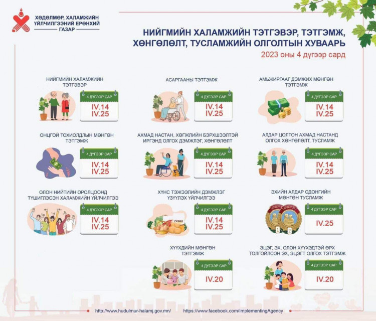 Дөрөвдүгээр сарын хүүхдийн мөнгөний олголт өнөөдөр хийгдэнэ admin 2 жилийн өмнө Дөрөвдүгээр сарын хүүхдийн мөнгөний олголт өнөөдөр хийгдэнэ. Дөрөвдүгээр сарын нийгмийн халамж, тэтгэвэр, тэтгэмж, хөнгөлөлт тусламж олгох хуваарь: Уншсан: 519 Share Tweet Share Үргэлжлүүлэн унших Өмнөх: Б.Байгалмаа: Эмэгтэйчүүд боломжоо бусдад тавьж өгдөг, атгаж чадалгүй алддаг тал бийДараагийн: Амай буюу Ж.Золбаярыг өөрийн амь нас, эрүүл мэндэд аюул учруулж болзошгүй хэмээн нэг сар цагдан хорихоор боллоо Холбоотой мэдээ Халтирч унаж, гэмтсэн нь хохирсоор байх уу?! Халтирч унаж, гэмтсэн нь хохирсоор байх уу?! 28 минутын өмнө ХУШХАН брэнд бүтэн жилийн турш 37 дугаар сургуулийн бага ангийн сурагчдын самрын хэрэглээг үнэ төлбөргүй хангахаар боллоо ХУШХАН брэнд бүтэн жилийн турш 37 дугаар сургуулийн бага ангийн сурагчдын самрын хэрэглээг үнэ төлбөргүй хангахаар боллоо 4 өдрийн өмнө Б.Одсүрэнгийн Хотын даргын орлогч байхдаа авсан 5.4 га газрыг хураах уу? Б.Одсүрэнгийн Хотын даргын орлогч байхдаа авсан 5.4 га газрыг хураах уу? 5 өдрийн өмнө
