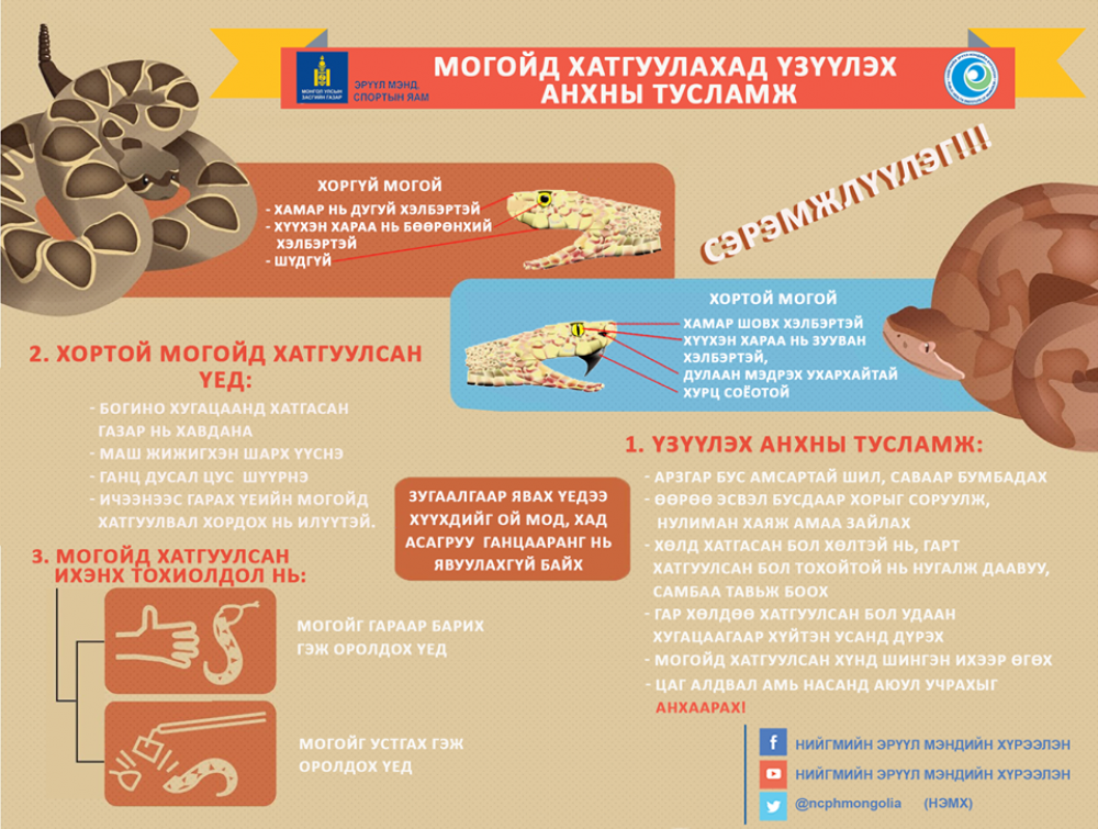 Иймд могойд хатгуулсны дараа дараах анхны тусламжийг үзүүлээрэй.