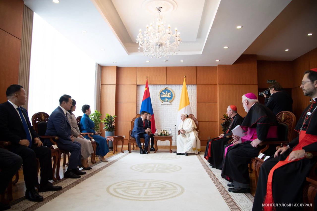 Улсын Их Хурлын дарга Г.Занданшатар Монгол Улсын Ерөнхийлөгчийн урилгаар хоёр улсын харилцааны түүхэнд анх удаа дээд түвшинд айлчлал хийж байгаад бид баяртай байгаагаа уулзалтын эхэнд тэмдэглэв. Тэрбээр, манай улсад хийж буй Гэгээн Ширээт Улсын Төрийн тэргүүн Пап Францисын төрийн айлчлал хоёр талын харилцаанд түүхэн шинэ хуудас нээж, даян дэлхийн энх тайван, амар амгаланг цогцлоож, хүн төрөлхтний нийтлэг эрх ашгийг бэхжүүлэхэд чухал ач холбогдолтой болж байгааг тэмдэглэж, эртний түүхэн харилцаатай Гэгээн Ширээт Улстай найрсаг харилцаа, хамтын ажилагаагаа өргөжүүлэн бэхжүүлэх нь Монгол Улсын гадаад бодлогын чухал зорилтуудын нэг мөн гэдгийг тэмдэглэв.