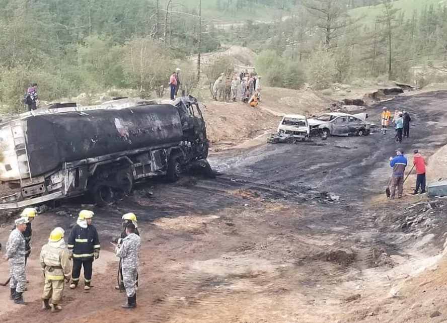 Архангай аймгийн Эрдэнэбулган сумын 1 дүгээр багийн нутаг Цагаан давааны ар уруудах хэсэгт 2020 оны 07 дугаар сарын 15-ны өдөр шатахуун тээвэрлэж явсан том оврын ачааны “Донгфэнг” маркийн тээврийн хэрэгсэл онхолдон тээвэрлэж явсан шатахуун асгарч гал гарсны улмаас 5 автомашин, 1 мотоцикл шатаж, 3 хүний эрүүл мэндэд хүндэвтэр, 4 хүний эрүүл мэндэд хүнд, 1 хүний эрүүл мэндэд хөнгөн хохирол, 8 хүний амь нас хохирсон хэргийг шүүхээр хянан хэлэлцлээ.