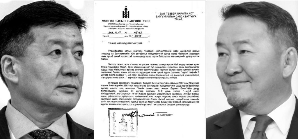 Гэтэл нэг сонирхолтой мэдээлэл уржигдар оройноос хойш яригдаад эхэллээ. Х.Нямбаатар хотод очоод автобусны хулгайг он цагийн дарааллаар нь гаргаж ирээд АТГ руу шилжүүлсэн. Тэр дунд Х.Баттулга, С.Баярцогт хоёртой холбоотой материал тууж яваа бололтой. Баримт нь олон нийтийн сүлжээгээр ч тараад авчээ. 2008 оны баримт байна. Сангийн сайд С.Баярцогт 2008 оны арванхоёрдугаар сарын 10-нд 1/6092 тоот албан бичгээр ЗТБХБ-ын сайд Х.Баттулгад “...Улаанбаатар хотын нийтийн тээврийн үйлчилгээний парк шинэчлэх ажлын хүрээнд их багтаамжийн 400 автобусыг гүйцэтгэгчтэй шууд гэрээ байгуулж, худалдан авах тухай танай хүсэлттэй танилцаад Шууд гэрээ байгуулах зөвшөөрлийг үүгээр олгож байна” гэсэн байна. Х.Баттулга “..400 автобусыг шууд гэрээгээр авчихъя” гээд С.Баярцогт нь “..Тэг ээ” гэжээ.