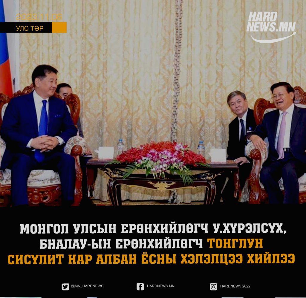 Монгол Улсын Ерөнхийлөгч Ухнаагийн Хүрэлсүх, Бүгд Найрамдах Ардчилсан Лаос Ард Улсын Ерөнхийлөгч Тонглун Сисүлит нар 2023 оны 11 дүгээр сарын 06-ны өдөр Ерөнхийлөгчийн ордонд албан ёсны хэлэлцээ хийлээ.