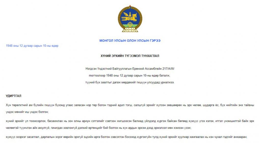 НҮБ-аас хүн нэг бүрийн эрхийг Хүний эрхийн түгээмэл тунхаглал хэмээх 30 зүйл заалттай цомхон юм шиг хэр нь Үндсэн хуультай дүйцэхүйц учир агуулгатай баримт бичгээр баталгаажуулж өгөөд 75 жилийн ойтой золгож байна. Үндсэн болон заяагдмал эрхийг тодорхойлж өгсөн энэхүү тунхаглалыг Монгол Улс дагаж мөрдсөн үү, учир холбогдлыг хэрхэн харж ойлгож байна вэ гэдгийг ярих хангалттай хугацаа өнгөрчээ. Тэгвэл өнөөдөр Хүний эрхийн түгээмэл тунхаглалын үзэл баримтлалыг Үндсэн хуулиас эхлээд хүний эрхийг баталгаaжуулсан эрх зүйн баримт бичиг бүртээ шигтгэж өгсөн гэж тунхагладаг ч хэрэгжилт хөрсөн дээрээ хэрхэн бууж байгааг “Зууны мэдээ” сонин цувралаар хүргэж байгаа билээ. Энэ удаад Хүний эрхийн түгээмэл тунхаглалын Гуравдугаар зүйлд заасан “Хүн бүр амьд явах, эрх чөлөөтэй байх, халдашгүй дархан байх эрхтэй” гэсэн заалт 75 жилийн хугацаанд хэр хэрэгжсэн бэ гэдэгт “Монголын Эмнэсти интернэшнл” байгууллагын зохицуулагч Г.Амарзаяа, МУИС-ийн Хууль зүйн сургуулийн багш Э.Туулайхүү нарын байр суурийг хүргэж байна.
