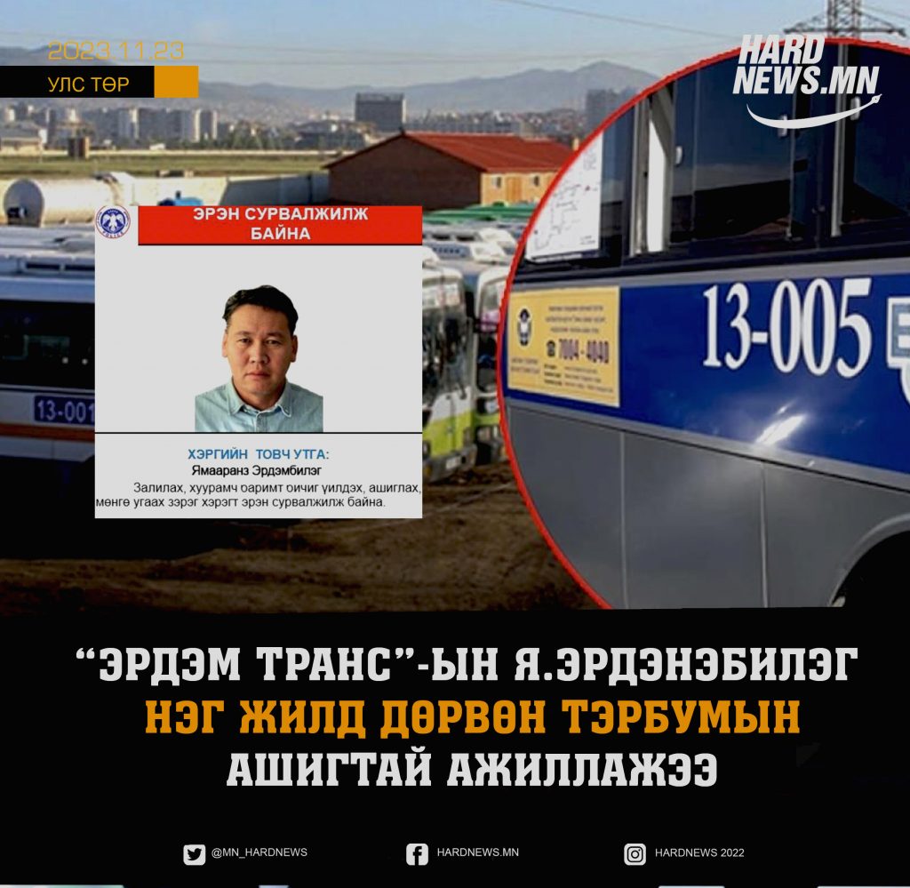 Нийслэлийн нийтийн тээврийн их багтаамжийн автобуснуудтай холбоотой хэргүүдийг АТГ, ЭЦА-нд шалгаж буй билээ. Энэ хүрээнд “Эрдэм транс” ХХК-ийн ерөнхий захирал Ямааранзын Эрдэнэбилэгийг цагдаагийн байгууллагаас орон даяар эрэн сурвалжилж эхэлснээ зарлалаа.