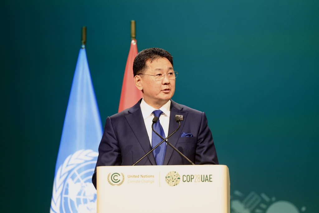 Монгол Улсын Ерөнхийлөгч Ухнаагийн Хүрэлсүх Арабын Нэгдсэн Эмират Улсын Дубай хотноо зохион байгуулагдаж буй Уур амьсгалын өөрчлөлтийн асуудлаарх дэлхийн удирдагчдын дээд түвшний уулзалтад 12 дугаар сарын 01-ний өдөр үг хэллээ.