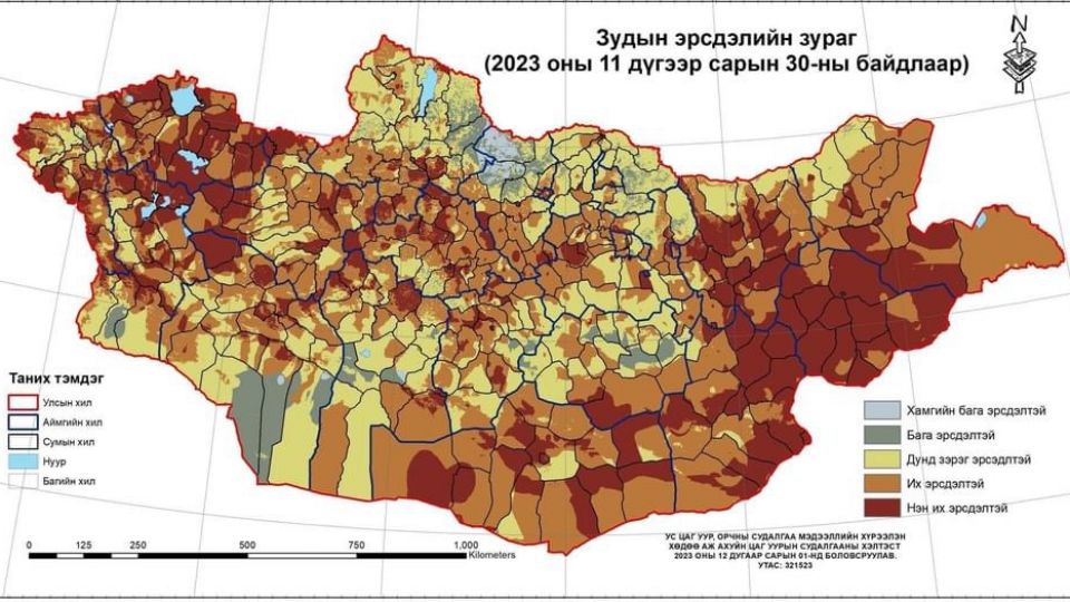 Харин Увсын Наранбулаг, Тэс, Говь-Алтайн Хөхморьт, Тайшир, Жаргалант, Завханы Завханмандал, Тэс, Сантмаргац, Баянхайрхан, Эрдэнэхайрхан, Цагаанчулуут, Тосонцэнгэл, Архангайн Төвшрүүлэх, Жаргалант, Хангай, Цахир, Эрдэнэмандал, Тариат, Хөвсгөлийн Цэцэрлэг, Жаргалант, Булганы Дашинчилэн, Рашаант, Хишиг-Өндөр, Төвийн Өндөрширээт, Алтанбулаг, Баян-Өнжүүл, Батсүмбэр, Лүн, Бүрэн, Улаанбаатарын Багануур, Дорноговийн Хөвсгөл, Иххэт, Өмнөговийн Манлай, Хэнтийн Өмнөдэлгэр, Биндэр, Батширээт, Жаргалтхаан, Өлзийт, Баян-Овоо, Сүхбаатарын Онгон, Сүхбаатар, Баруун-Урт, Дарьганга, Асгат, Баяндэлгэр, Эрдэнэцагаан, Дорнодын Халхгол, Сэргэлэн, Гурванзагалд цагаанаар зудархуу байдалтай байна.