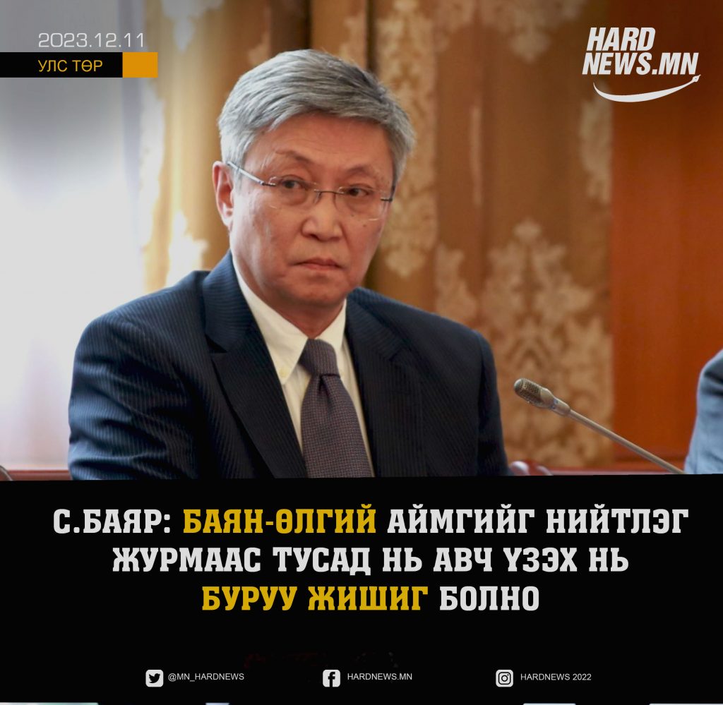 Тэгвэл уг асуудалд Ерөнхий сайд асан С.Баяр " Баян-Өлгий нийтлэг журмаас тусад нь авч үзэх нь буруу жишиг болно. Үндсэн хууль талаасаа ч, эрх тэгш байх үндсэн зарчим талаасаа ч. Баруун 3 аймагт үндэстэний цөөнх олноороо таран суурьшсан. Нөгөөтэйгүүр, цөөнхийн төлөөллөө жагсалтанд оруулах арга бий. Юутай ч Үндсэн хууль, үндсэн зарчим хоёроо зөрчиж болохгүй, гамнах ёстой" хэмээжээ.