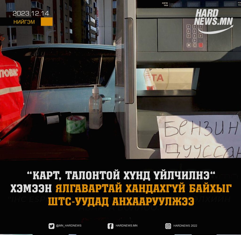 Тус мэдэгдэлд: Хяналт шалгалтад хамрагдсан шатахуун түгээх станцууд нь АИ-92 шатахуун болон дизель түлшний нөөц бага, агуулахаас татан авалт хийгдээгүй тул нөөц дууссан, татан авалтаа хүлээж байна. Мөн гэрээт болон тухайн аж ахуй эрхлэгчийн хэрэглэгчийн карт, талонтой хэрэглэгчдэд борлуулалт хийж, хязгаарласан нөхцөл байдал тогтоогдсон.