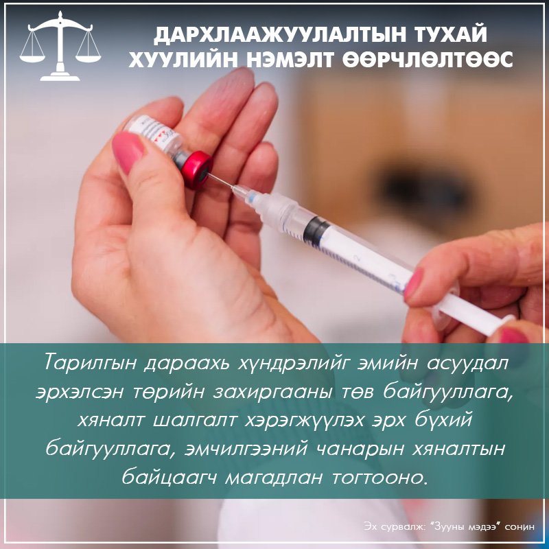 Дархлаажуулалтын тухай хуулийн нэмэлт өөрчлөлтөөс-13 admin 1 жилийн өмнө Уншсан: 138 Share Tweet Share Үргэлжлүүлэн унших Өмнөх: Томуугаас урьдчилан сэргийлэх энгийн аргуудДараагийн: Дархлаажуулалтын тухай хуулийн нэмэлт өөрчлөлтөөс-14 Холбоотой мэдээ П.Батчулуун: Хэрэв би өршөөл гуйсан бол энэ салбарт зүтгэж байгаа залуус маань юунд итгэж, юуны төлөө зүтгэх юм бэ П.Батчулуун: Хэрэв би өршөөл гуйсан бол энэ салбарт зүтгэж байгаа залуус маань юунд итгэж, юуны төлөө зүтгэх юм бэ 3 өдрийн өмнө С.Энхболд: Эрүүл мэндийн салбар элгээрээ хэвтэхэд ойрхон болсон С.Энхболд: Эрүүл мэндийн салбар элгээрээ хэвтэхэд ойрхон болсон 3 7 хоногийн өмнө ХӨСҮТ: Улаанбурхан өвчний лабораториор батлагдсан тохиолдол 8154, эмнэлэгт 666 хэвтэн эмчлүүлж байна ХӨСҮТ: Улаанбурхан өвчний лабораториор батлагдсан тохиолдол 8154, эмнэлэгт 666 хэвтэн эмчлүүлж байна 4 сарын өмнө