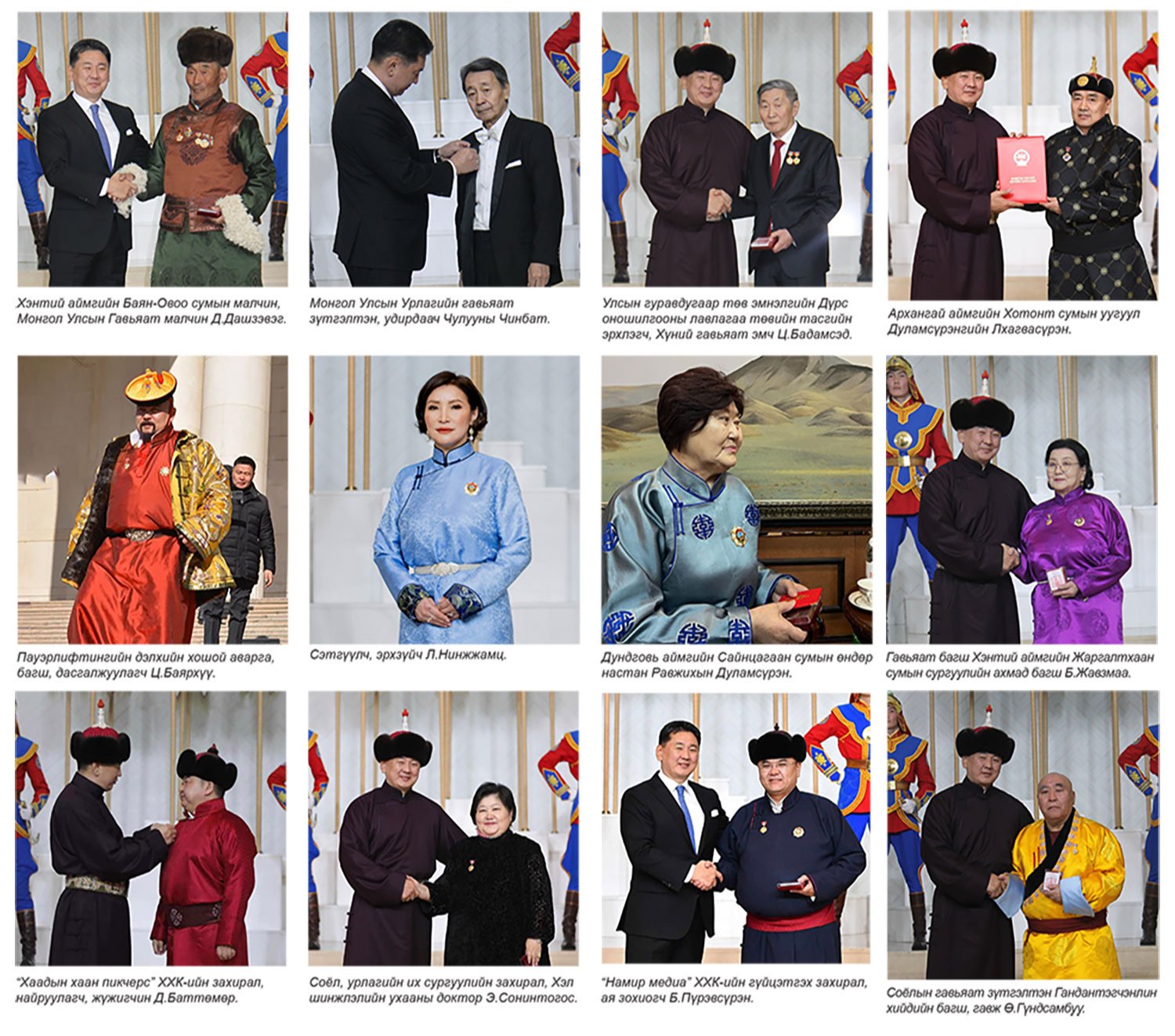 XVII жарны “Хилэнт эх” хэмээх модон луу жилийн Цагаан сарын баярыг тохиолдуулан Ерөнхийлөгч У.Хүрэлсүх зарлиг гаргаж, нэр бүхий хүмүүст төрийн дээд цол олгож, одон, медаль гардууллаа.