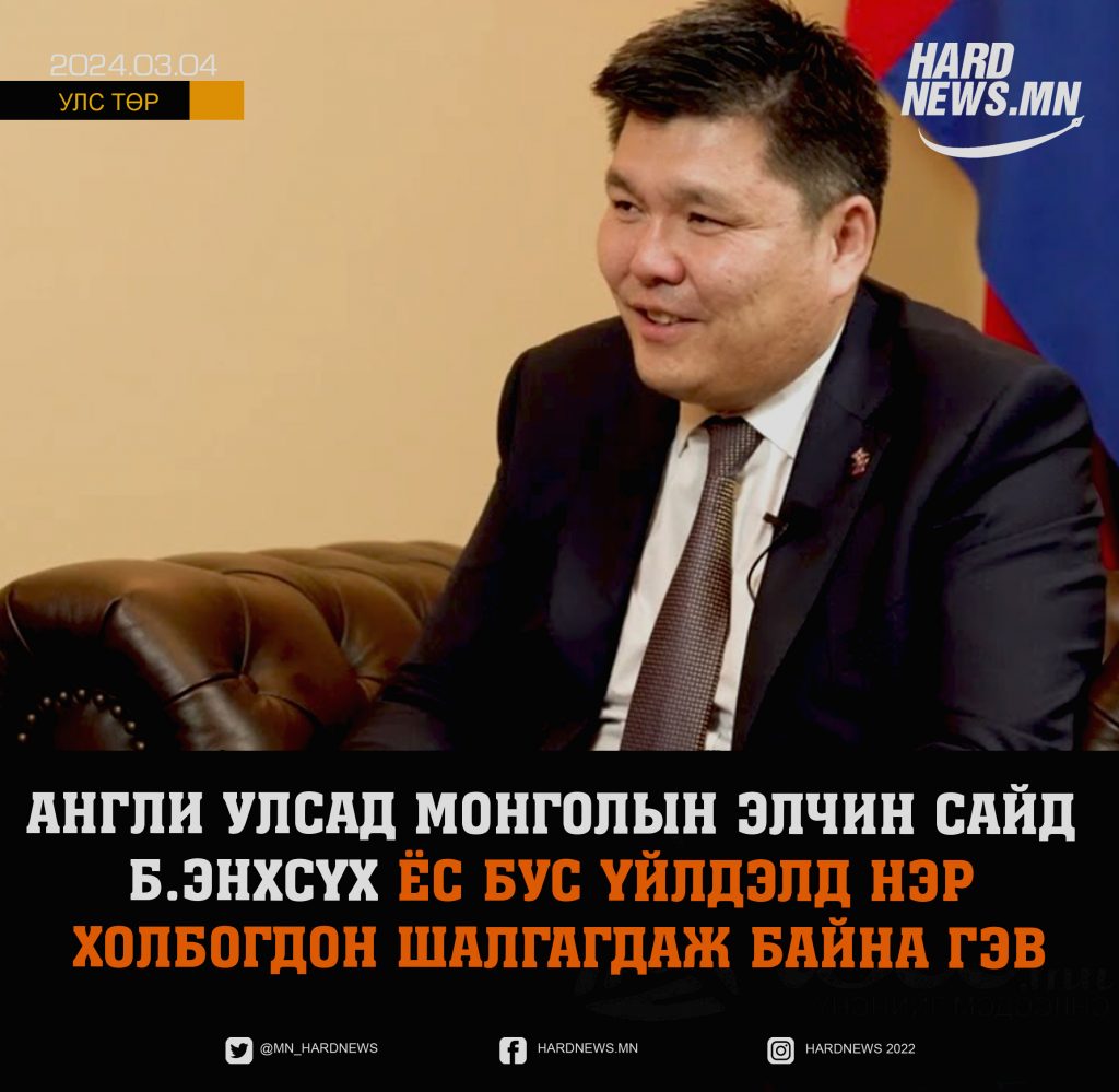 Монгол Улсаас Англи улсад / ИБУИНХУ/ суугаа Онц бөгөөд Бүрэн эрхт Элчин сайд Б.Энхсүх ёс бус үйлдэлд нэр холбогдон шалгагдаж байгаа талаарх мэдээлэл хэвлэл мэдээлэлд цацагдаж эхэллээ.