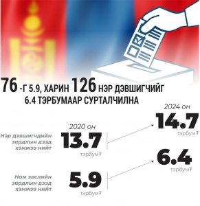 Монгол Улс түүхэндээ анх удаа 126 гишүүнтэй болно. Ингэхдээ Үндсэн хуулийн өөрчлөлтөөр 78-ийг нь мажоритор, 48-ийг нь...