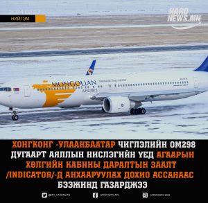 Хонгконг-Улаанбаатар чиглэлийн 2024 оны 2 дугаар сарын 27-ны өдрийн нислэг хойшилсон талаар манай сайтын уншигчаас мэдээлэл ирүүлсэний...