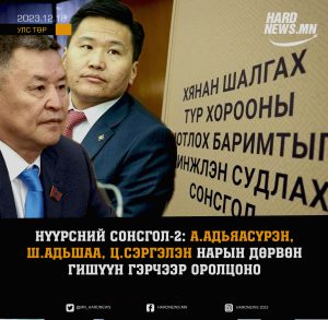 НҮҮРСНИЙ СОНСГОЛ: УИХ-ын гишүүн А.Адъяасүрэн өмгөөлөгч О.Баасанхүүгийн хамтаар гэрчээр оролцож байна