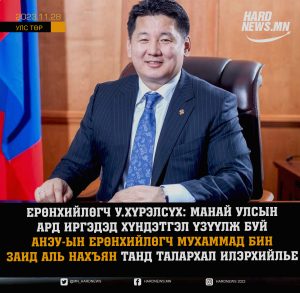 Монгол Улсын Ерөнхийлөгч У.Хүрэлсүх Уур амьсгалын өөрчлөлтийн асуудлаарх дэлхийн удирдагчдын дээд түвшний уулзалтад оролцохоор Арабын Нэгдсэн Эмират...
