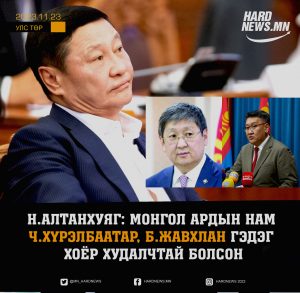 Чуулганы нэгдсэн хуралдааны эхэнд УИХ-ын гишүүн Н.Алтанхуяг агаарын бохирдол, төсөвтэй холбоотой асуудлаар үг хэлэв. УИХ-ын гишүүн Н.Алтанхуяг:...