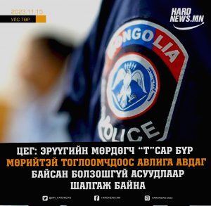 Цагдаагийн байгууллагаас Эрүүгийн хуулийн 20.17 дугаар зүйл буюу "мөрийтэй тоглоом зохион байгуулах" гэмт хэрэгтэй тэмцэх чиглэлээр Ажлын...