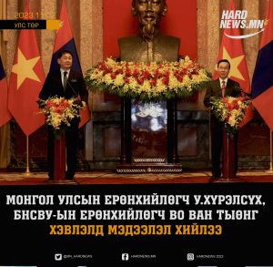 Монгол, Вьетнамын Хамтарсан мэдэгдлийг бүрэн эхээр нь хүргэж байна Монгол Улсын Ерөнхийлөгч Ухнаагийн Хүрэлсүх, Бүгд Найрамдах Социалист...