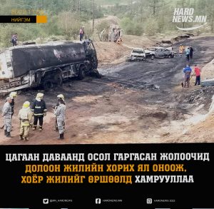 Архангай аймгийн Эрдэнэбулган сумын нутаг Цагаан даваан орчимд 2020 оны долдугаар сарын 15-ны өдөр шатахуун тээвэрлэж явсан...