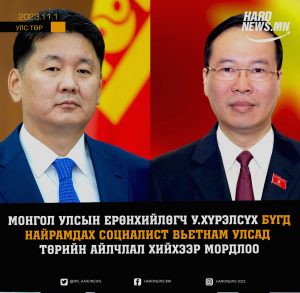 Монгол Улсын Ерөнхийлөгч Ухнаагийн Хүрэлсүх Бүгд Найрамдах Социалист Вьетнам Улсын Ерөнхийлөгч Во Ван Тыөнгийн урилгаар тус улсад...
