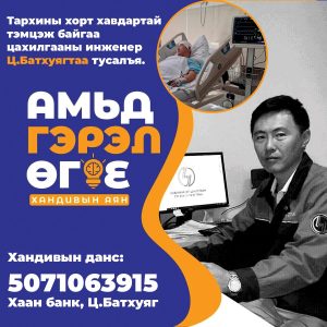 Турк улсад тархины хорт хавдартай тэмцэж буй Улаанбаатар цахилгаан түгээх сүлжээ ТӨХК-ийн Тоолуурын лабораторийн инженер Ц.Батхуягт сайхан...
